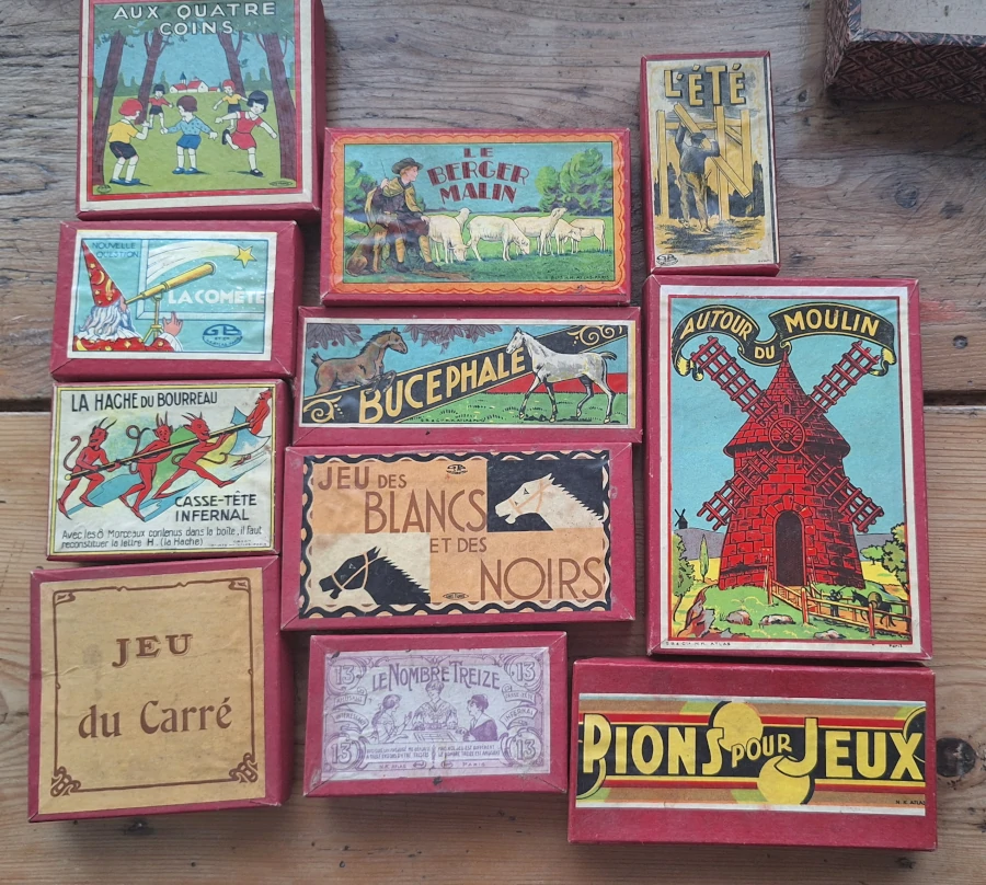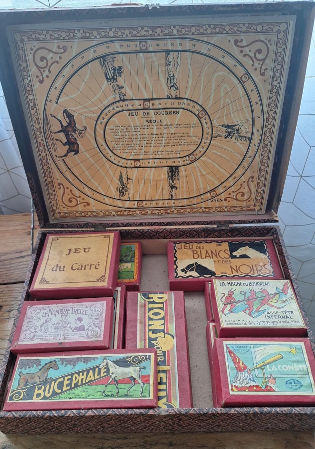 Chaque objet a sa quête. Cette boîte de jeux réunis n’échappe pas à la règle : elle attend de retrouver une étagère où l’on prendra plaisir à redécouvrir les petits jeux d’autrefois, en collection ou pour des moments ludiques en famille.