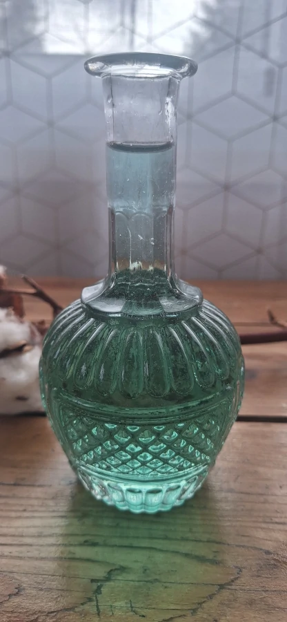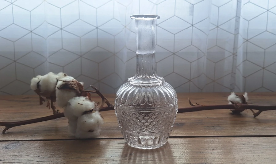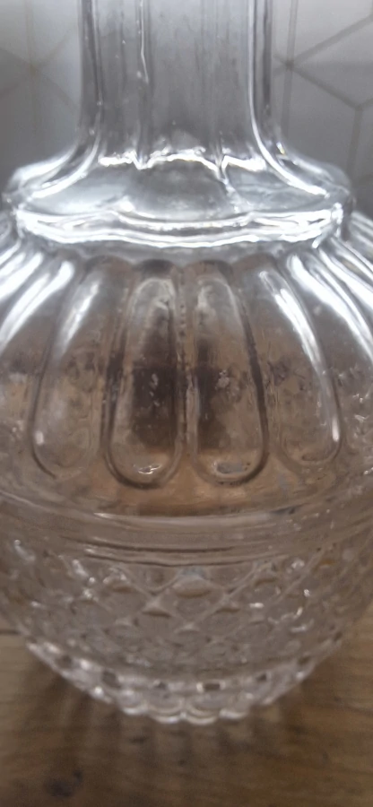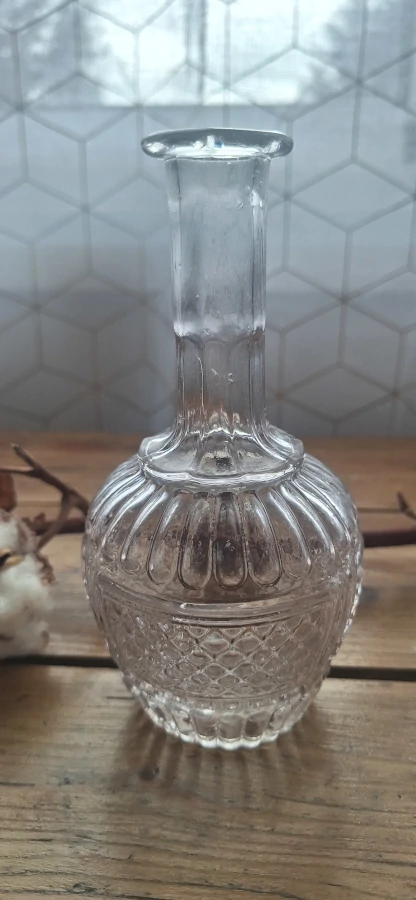 Chaque carafe a sa petite histoire. Celle-ci, avec ses reliefs délicats et ses reflets lumineux, vous invite à redécouvrir la beauté du verre ancien, même sans son bouchon. Une touche de charme ancien pour votre table ou votre collection.