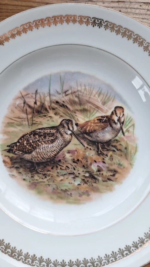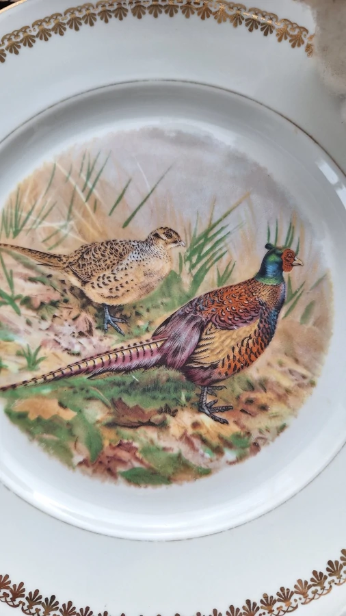 • Type : Scènes animalières naturalistes (gibier / faune), transferts polychromes, bordure dorée