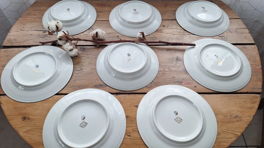Service très courant en Sologne dans les années 1950, destiné aux tables familiales du dimanche. Aujourd’hui, ces assiettes retrouvent une nouvelle vie et apportent un charme vintage unique, que ce soit pour une table de réception ou simplement pour l’art de la table, tout en conservant leur authenticité et leur histoire.