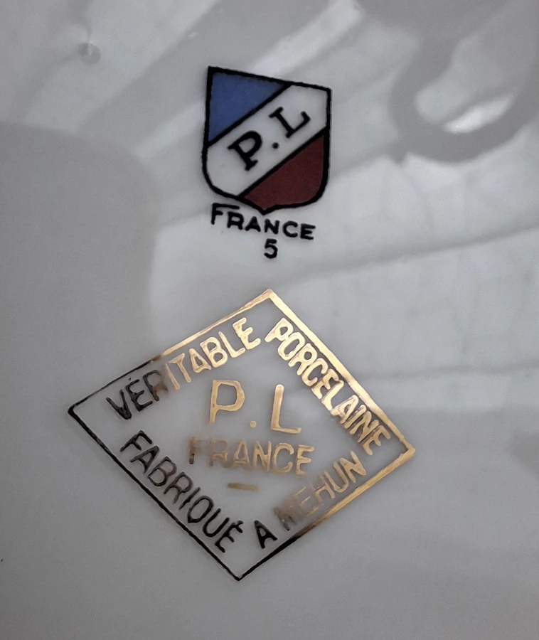 • Origine :France – Écu tricolore P.L France 5, Cachet losange Véritable Porcelaine – P.L – Fabriqué à Mehun