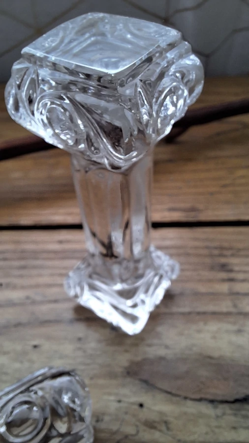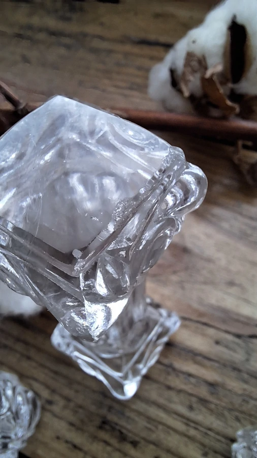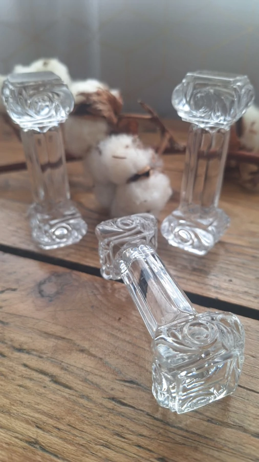 Ces petites colonnes de cristal ont traversé plus d’un siècle de tables élégantes. Même avec leurs éclats discrets aux extrémités, elles racontent l’histoire d’un Baccarat authentique, rigoureux et raffiné. Les tenir entre les mains, c’est sentir le poids du temps et le savoir-faire français à chaque détail. Un lot qui mérite une place sur une belle table… ou dans une collection où l’histoire compte autant que l’éclat du cristal.