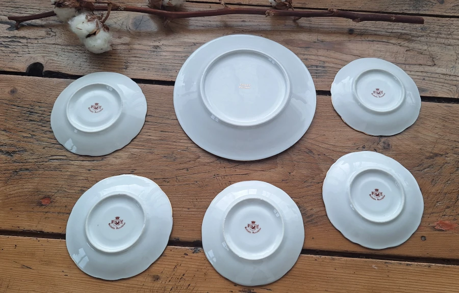 Lot de coupelles et assiette à dessert en porcelaine du Berry