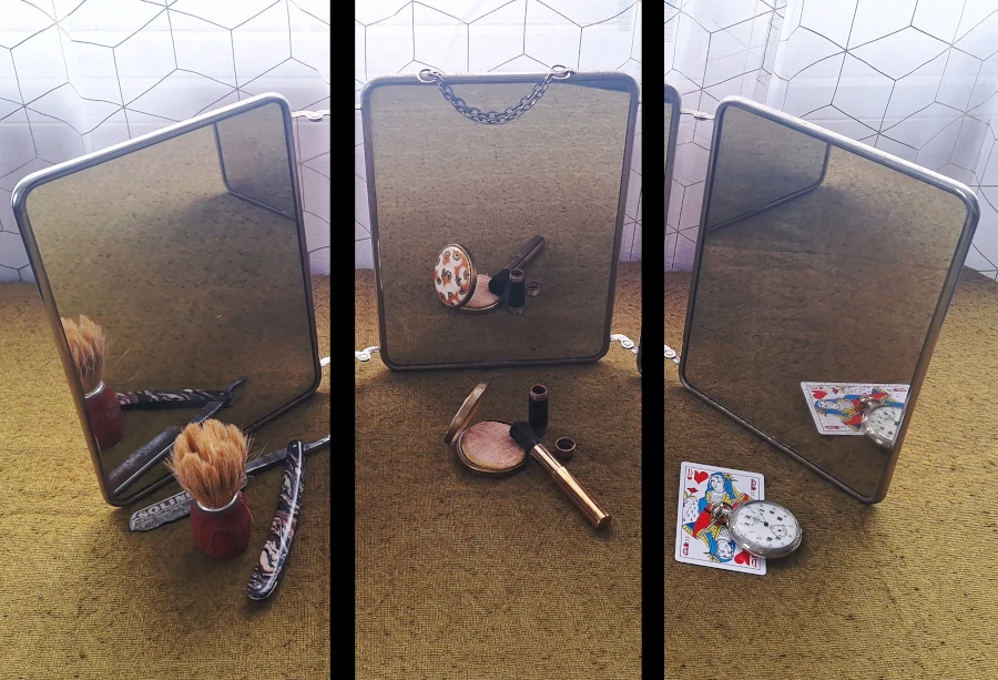 Les miroirs triptyques n’étaient pas seulement des accessoires de toilette. Les magiciens les utilisaient aussi pour s’entraîner à leurs tours de cartes et illusions, profitant des trois volets pour observer chaque angle de leurs mouvements.