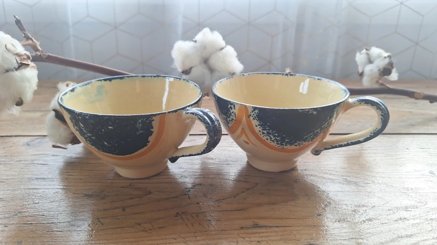 Chaque bolée a sa petite histoire. Entre les mains d’un artisan normand dans les années 50, elles ont sans doute servi à trinquer lors de repas simples ou de petites fêtes familiales. Aujourd’hui, elles reprennent leur rôle : offrir un moment de plaisir, à table ou en décoration, et rappeler que même les objets du quotidien peuvent avoir une âme.